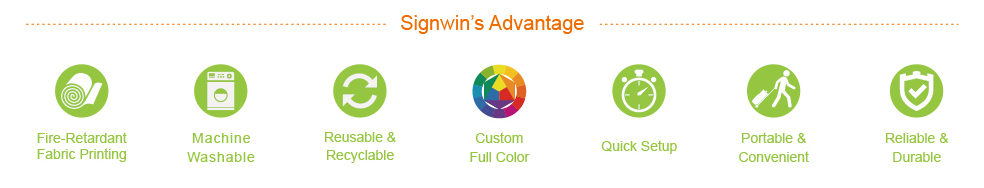 The frame is made from durable, lightweight aluminum tubing that is bungee-corded together for easy set-up.Your image is custom printed in onto stretch fabric via our dye-sublimation process. This produces a vibrant, high-resolution graphic that slips onto the frame pillowcase-style. A sturdy zippered closure along the bottom edge pulls it tight for a professional, wrinkle-free and eye-catching finish.