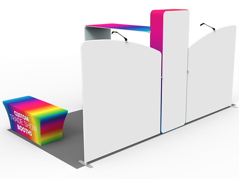 Waveline display booth have taken the tradeshow world by storm.The frame is made from durable, lightweight aluminum tubing that is bungee-corded together for easy set-up.Your image is custom printed in onto stretch fabric via our dye-sublimation process. This produces a vibrant, high-resolution graphic that slips onto the frame pillowcase-style. A sturdy zippered closure along the bottom edge pulls it tight for a professional, wrinkle-free and eye-catching finish.
