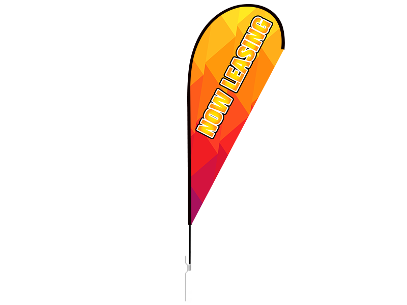 11ft NOW LEASING Stock Teardrop Flag with Ground Stake 02