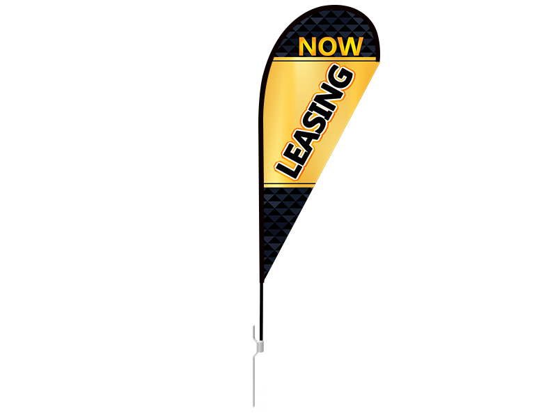 8ft NOW LEASING Stock Teardrop Flag with Ground Stake 02