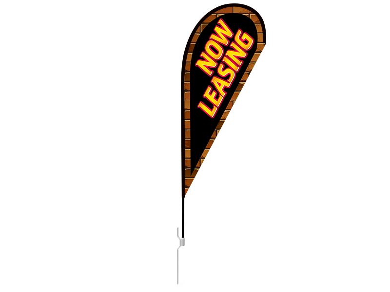 8ft NOW LEASING Stock Teardrop Flag with Ground Stake 04